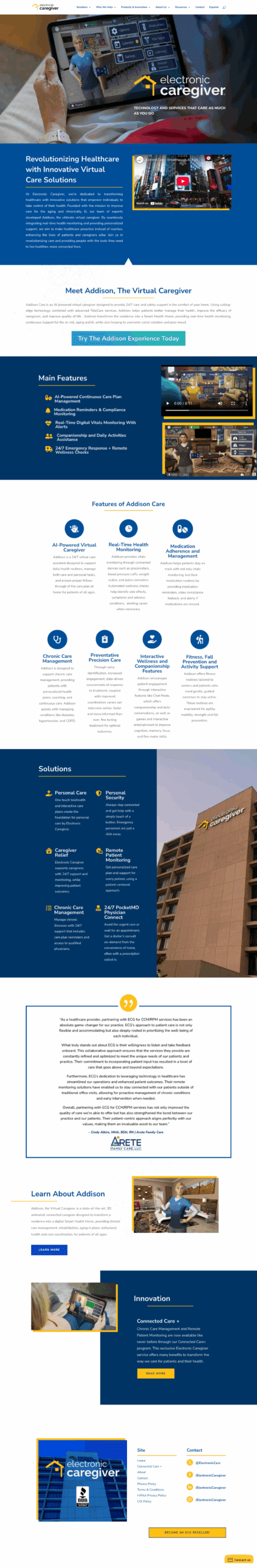 Electronic Caregiver, a health-tech company that has made ground-breaking advancements in remote patient monitoring and medical adherence, engaged Sinuate Media as their marketing partner to support their national expansion. We’ve played a vital role in spearheading the growth of their Master Care Partner program through recruitment efforts and developing a communications platform for the national sales network. We have also crafted a captivating corporate web presence with a cutting-edge website design and development. In addition, we have led national awareness through targeted digital advertising initiatives, implemented lead generation campaigns to fuel sales growth, and fostering seamless internal operations with a robust intranet.